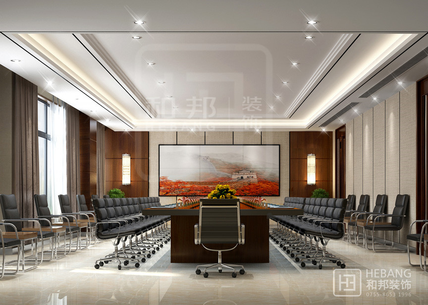 以華麗的裝飾、濃烈的色彩、精美的造型達到雍容華貴的裝飾效果而現(xiàn)代的辦公場所并沒有給人以距離感,它是親和的也是愜意的,并且具有很強的實用性。