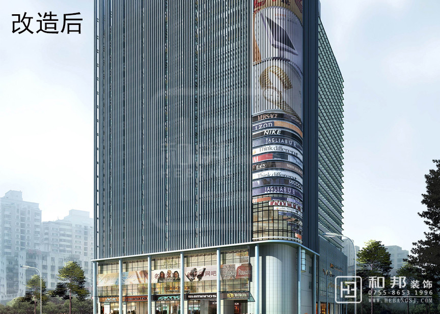 改造前廣告牌橫幅雜亂的亂掛著,改造后把所有廣告牌都歸納在轉角處,這樣既讓廣告顯得更加突出又使整棟樓看起來高端大氣。