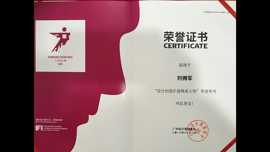 廣州設計周:劉擁軍榮獲【設計創造價值精英人